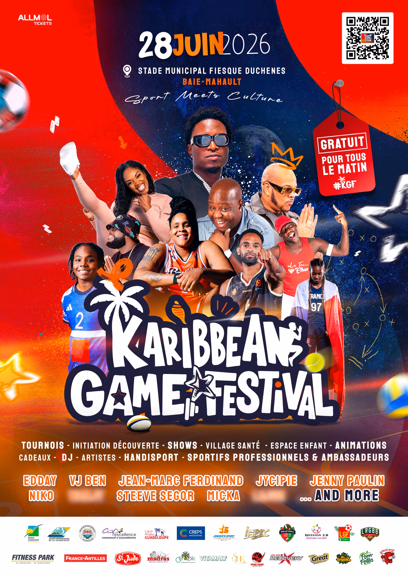 đïž KARIBBEAN GAME FESTIVAL 2026 Le Karibbean Game Festival dĂ©barque pour une journĂ©e exceptionnelle mĂȘlant sport, culture et Ă©nergie caribĂ©enne đŽđ„  đ Stade de Baie-Mahault đ 28 juin 2026 ⥠UN CONCEPT UNIQUE Le KGF, câest bien plus quâun Ă©vĂ©nement⊠Câest une expĂ©rience immersive oĂč le sport devient un spectacle, oĂč les cultures se rencontrent et oĂč lâambiance ne redescend jamais.  đ AU PROGRAMME 7h â Lancement des tournois Des compĂ©titions intenses avec des Ă©quipes prĂȘtes Ă tout donner. 11h â 12h : DĂ©couverte & rencontres Initiations sportives et Ă©changes avec des joueurs professionnels. đ Handisport Ă lâhonneur : ceci basket, ceci foot et activitĂ©s inclusives. 12h â 14h : Show culturel guadeloupĂ©en Musique, DJ, performances et ambiance intergĂ©nĂ©rationnelle. 14h â 20h : Ambiance festival DJ sets, artistes, animations, Zumba, performances⊠Une vibe 100% CaribĂ©enne jusquâau coucher du soleil đ„ đŽ UNE EXPĂRIENCE Ă VIVRE  âąđâœđ Plusieurs disciplines sportives ⹠đ§ DJ & artis