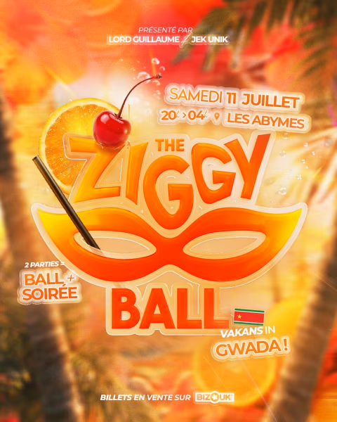 ZIGGY BALL - VAKANS IN GWADA đŽÂ Le Ziggy Ball arrive en Guadeloupe pour une Ă©dition spĂ©ciale VACANCES le 11 juillet 2026 aux Abymes,de 20h Ă 4h du matin.Ton premier ball en Guadeloupe  ! La soirĂ©e dĂ©bute avec le Ball : face, runway, vogue fem et bien dâautres catĂ©goriesâŠSur le thĂšme des vacances en Guadeloupe, viens performer entre plages de sable fin, montagnes verdoyantes, couchers de soleil et nuits tropicales. PrĂ©pare ton look et viens briller sans te retenir. En deuxiĂšme partie de soirĂ©e la nuit sâenflamme. Les DJ prennent le relais pour une soirĂ©e festive jusquâau petit matin, entre chaleur, Ă©nergie et lĂącher-prise.  PrĂ©parez-vous.La scĂšne ballroom caribĂ©enne sâĂ©tend.  Un Ă©vĂ©nement LGBTQ+ friendly par Lord Guillaume, Jek Unik et lâassociation The Ziggyz.  CHOISIS TA CATĂGORIE : FACE â âindice 50 minimumâLe soleil de Guadeloupe, câest toi. Ta peau est prĂ©cieuse. Montre ton visage Ă©clatant, lumineux et irrĂ©sistible mais toujours protĂ©gé đ ĂlĂ©ment obligatoire : couvre-chef ( chapeau, bakwa, casquette⊠)  ➻ REALNESSâ âRandonnĂ©e & cascadeâFraĂźcheur, nature, Ă©nergie pure. Tu sors dâune randonnĂ©e en montagne, prĂȘt Ă plonger dans la cascade.đ ĂlĂ©ment obligatoire : tenue avec du vert (haut ou bas) ➻ RUNWAY â âBlue Horizon »Comme une vague qui fend lâocĂ©an, tu avances avec assurance vers lâhorizon.Chaque pas trace ta route, fluide, puissant, inarrĂȘtable.đ ĂlĂ©ment obligatoire : une tenue bleue. BE CREATIVE !  ➻ LIP SYNC â âLip sync for your life ! âTu connais les paroles, tu connais lâattitude. Fais revivre un son iconique comme si tu Ă©tais lâartiste lui-mĂȘme.đ ĂlĂ©ment obligatoire : aucun (juste ton Ă©nergie)  Choisis une des chansons pour tes Tens et apprends les trois sĂ©lectionnĂ©es pour les battles.  TENS :stony : que toi Tanya St Val : An lov Rachelle Allison : Si seulement Njie : chui chui chui Shanika : kay ve yo FĂ©catâjy : toutouni Battles:Stony : je tâaime. Tanya St Val : Boogie zouk Miimii : SĂ© Miimii  ➻ VOGUE FEM â âSorbet coco! Qui veut goĂ»ter ?âTu es la star de la plage, celle quâon entend avant mĂȘme de la voir. Fais sonner ta prĂ©sence et rafraĂźchis la foule avec tes cinq Ă©lĂ©ments. đ ĂlĂ©ment obligatoire : une tenue blanche comme le sorbet coco.  ➻ SEX SIREN â âSex on the BeachâLe soleil se couche, le ciel devient orange⊠la nuit tombe. Tous les regards sont sur toi : tu es le dĂ©sir, chaud comme un sunset sur la plage.đ ĂlĂ©ment obligatoire : une tenue avec du rouge et de lâorange comme le cocktail Sex on the Beach.  ➻ SHAKE THAT ASS â â tu sens venir la basse ? âCâest lâheure du sound system. Les enceintes guident tes hanches, fais bouger tes fesses Ă chaque coup de basse. đ ouvert Ă tous  ➻ DANCE OFF â âVacances freestyleâEn vacances, on lĂąche prise⊠le son tombe sans prĂ©venir. Peu importe la musique, adapte-toi et fais le show â tout est permis, sauf le vogue.đ ĂlĂ©ment obligatoire : aucun (juste ton Ă©nergie)  Ordre des catĂ©gories :  Face đRealness đRunway đLip Sync đVogue FemđSex Siren đShake that ass đDance offđ