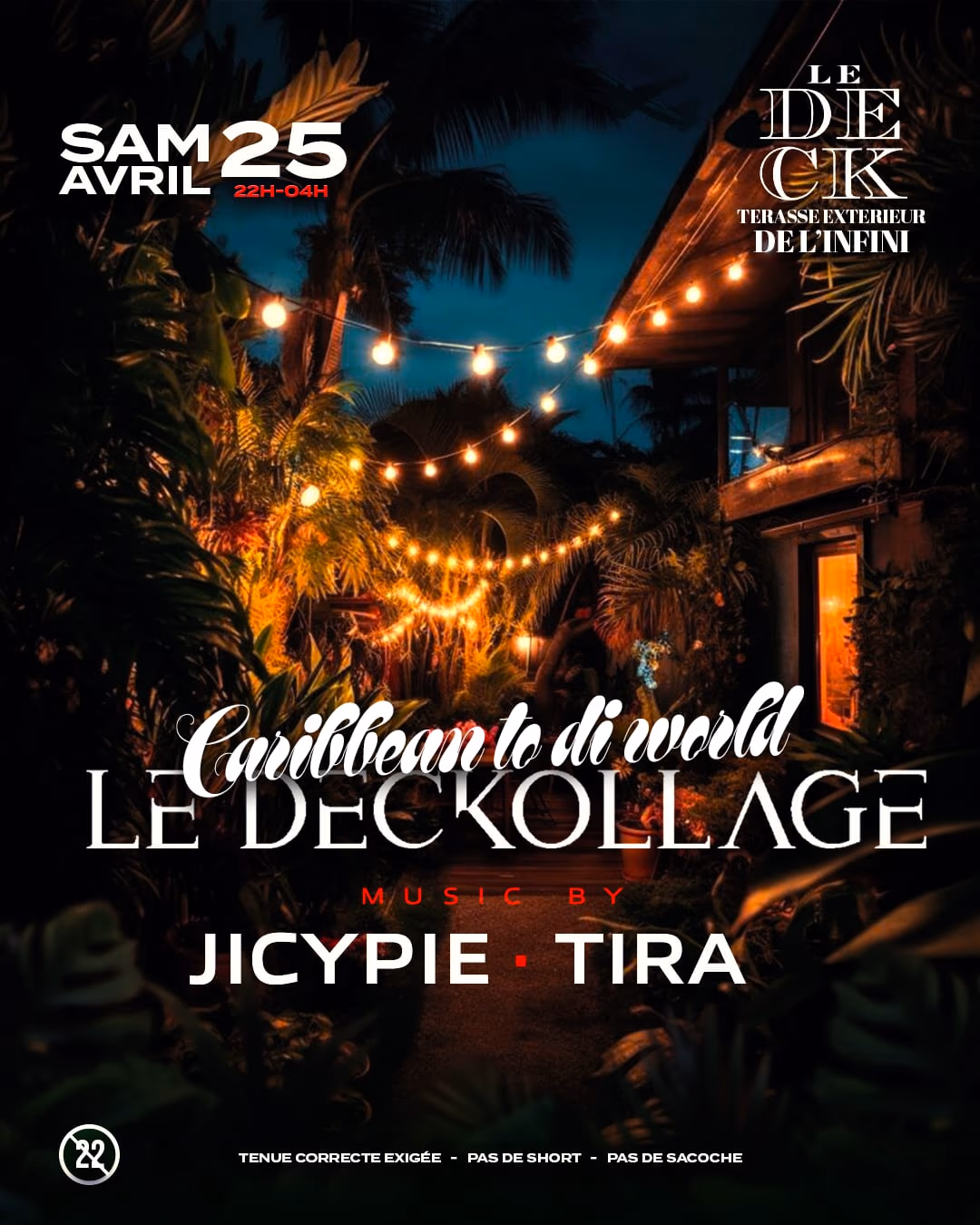 đ CARIBBEAN TO DI WORLD â ALYSSIA BIRTHDAY EDITION đâš Bloque ta date⊠Cette fois, on voit les choses en grand. Pour cĂ©lĂ©brer lâanniversaire dâAlyssia, on tâembarque dans une vibe Caribbean to the World đŽđ„ Une nuit oĂč les Ă©nergies, les cultures et les vibes se mĂ©langent pour crĂ©er une ambiance unique, entre Ăźle et international. đ« Attends-toi Ă : âą Une atmosphĂšre solaire & Ă©lectrique âą Des sons Caribbean, Hip-Hop & afro vibes âą Une Ă©nergie qui ne redescend jamais â° LE PROGRAMME âą SoirĂ©e de 20h Ă 4h âą Happy Hour en dĂ©but de soirĂ©e đč âą Food, drinks & vibes toute la nuit đ§ LINE UP Des DJ prĂȘts Ă te faire voyager toute la nuit đđ„ â ïž INFOS IMPORTANTES âą Dress code : Caribbean / Tropical / Sexy / Glow âš âą Tenue soignĂ©e exigĂ©e âą Lieu : Le Deck â Gosier Cette soirĂ©e, câest plus quâun anniversaire⊠Câest une vibe, une Ă©nergie, un moment Ă vivre. On ne fĂȘte pas juste un Ăąge. On cĂ©lĂšbre une vision. đŽ Letâs take it Caribbean⊠to the World đ