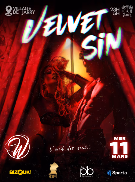 VELVET SINMercredi 11 Mars 2025Préparez-vous à une immersion là où l'élégance rencontre l'interdit, conçu pour ceux qui osent explorer les frontières du désir et du spectacle.Pour vous Mesdames et pour vous Messieurs, sous les lumières tamisées et dans une atmosphère feutrée, nous vous invitons à vivre une expérience immersive où l’art et la thématique sensuelle est élevé au rang de performance scénique.Une édition placée sous le signe de l'audace et de l'obscurité raffinée.Ce n'est pas simplement une soirée, c'est un voyage sensoriel chorégraphié.Explorer les frontières du désir et du spectacle.Une expérience immersiveOubliez tout ce que vous savez sur la vie nocturne. Ce n'est pas une simple soirée, c'est un sanctuaire pour les esthètes et les esprits libres.Ce qui se passe au W CLUB… reste au W CLUB.Infos & Réservations : 06 12 51 40 39La direction se réserve le droit d’entrée, même avec prévente.Tenue et comportement correcte exigé – Pas de bijoux extravagants, chaussures plates et tongs interdites.