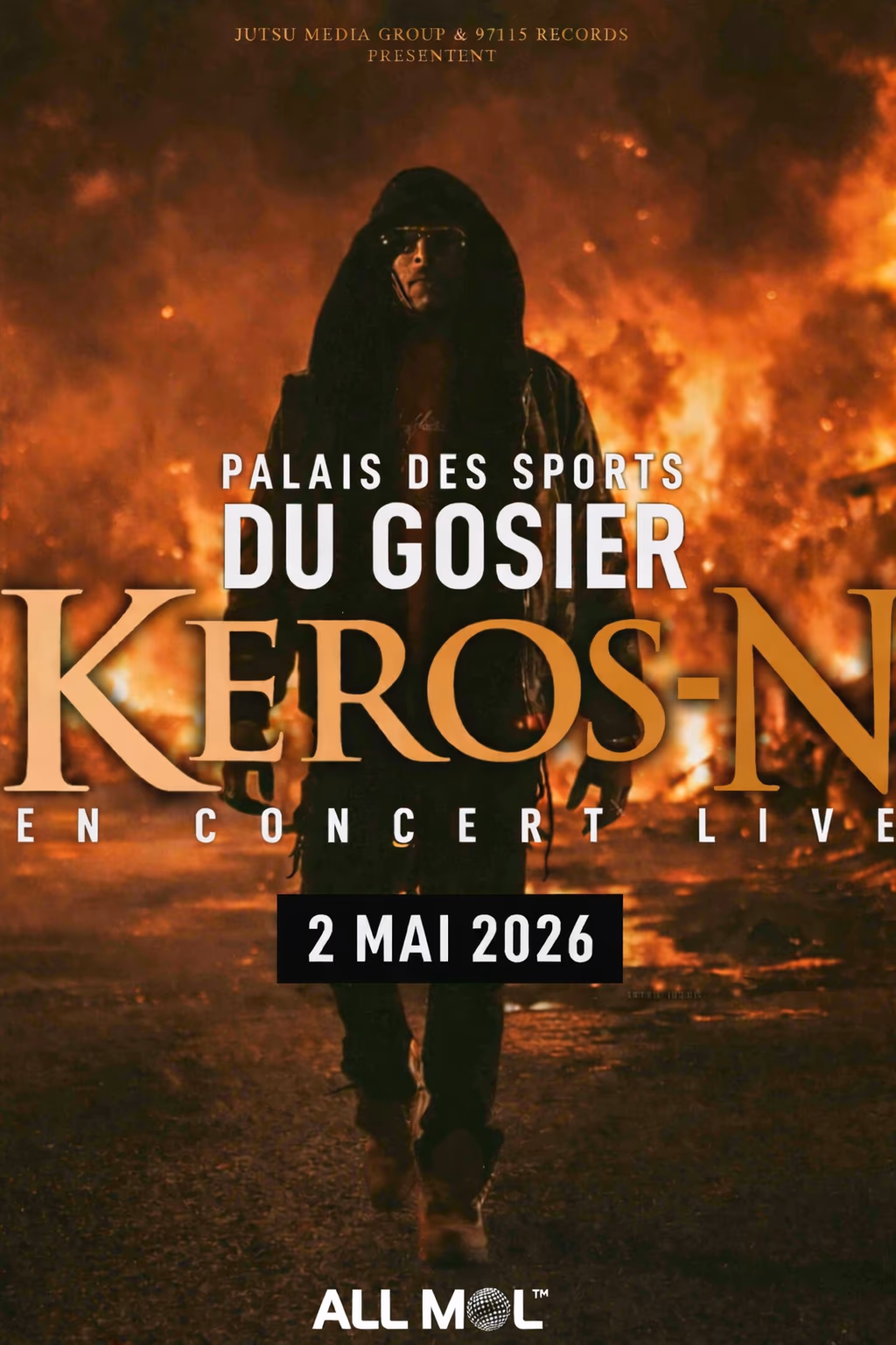 Le 02 Mai 2026, Keros-N sera en CONCERT LIVE exceptionnel au Palais des Sports du Gosier en Guadeloupe. Informations pratiques : • Date : 02 Mai 2026 • Lieu : Palais des Sports du Gosier, Le Gosier, Guadeloupe