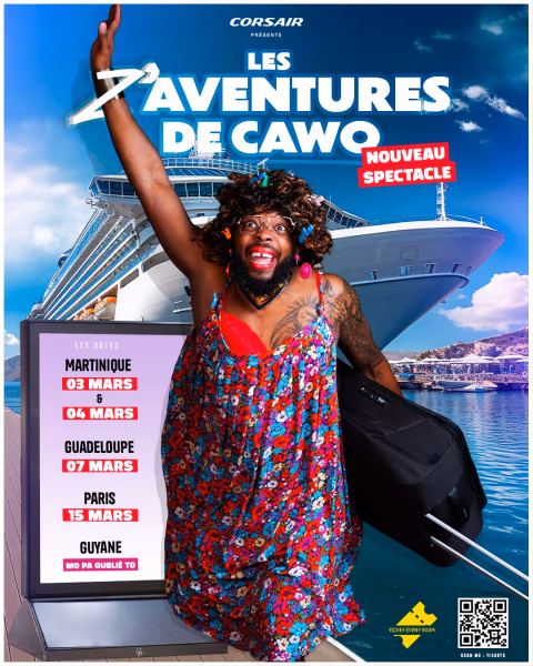 Cawo en route pour son nouveau spectacle , Es-ce qu’elle changera cette Cawo? Mais pas du tout !!!! Préparez-vous à plonger dans l’univers de Cawo totalement atypique et irrésistiblement drôle. Un personnage unique à elle-même avec sa gestuelle et un répertoire de punchline à la fois original et 100% lokal. Dans ce spectacle, cawo vous embarque dans son milieu professionnel ou chaque journée se transforme en mission impossible. Dans son milieu familial avec des scènes aussi vraies que délirantes, entre traditions, habitudes et incompréhensions monumentales qui n’arrivent qu’à elle. Et bien sûr elle ne s’arrête pas car même en vacance, alors que tout devrait être calme, Cawo vous prouvera que le repos n’est qu’un concept théorique. Entre anecdotes croustillantes, catastrophes tropicales et rencontres improbables, tout est au rendez-vous pour rire en la voyant sur scène. Un cocktail de bonne vibes vous attend pour ce spectacle, venez comme vous êtes et repartez avec le rire au bout des lèvres.