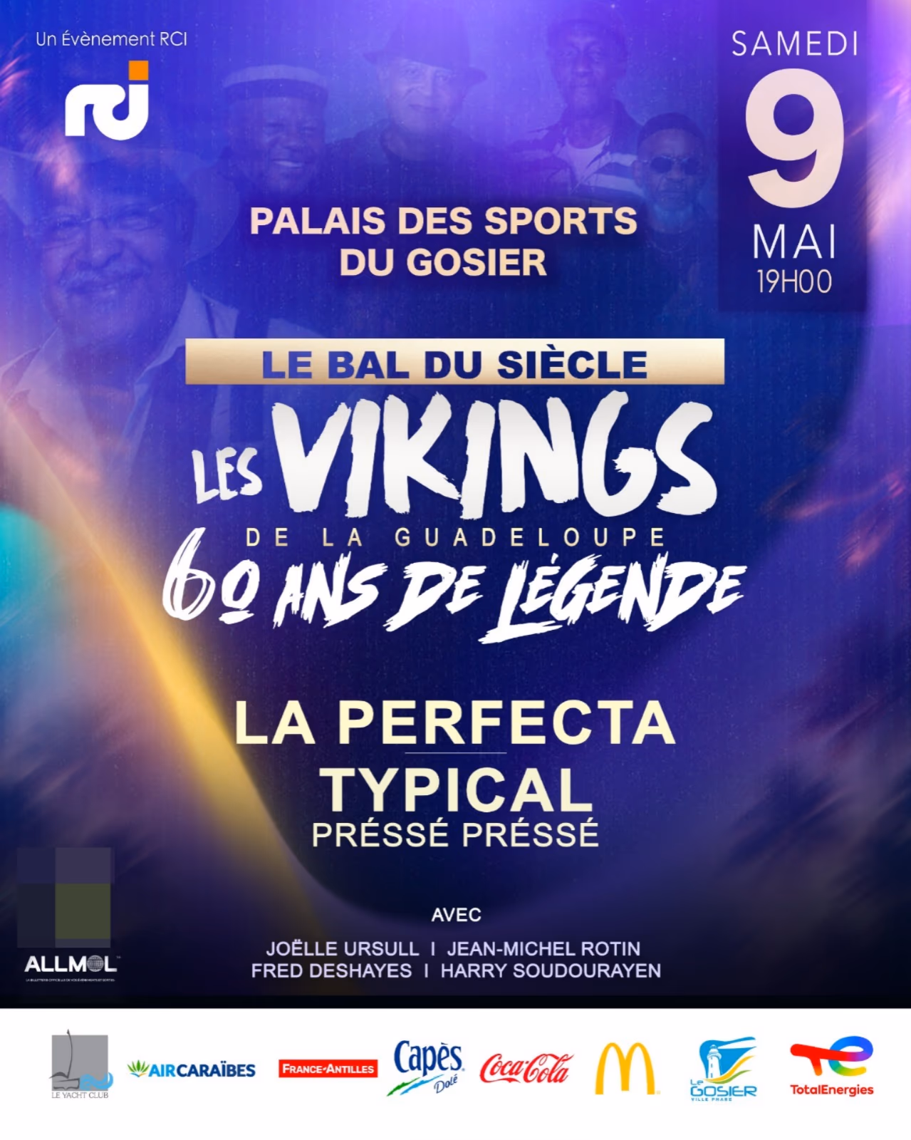 🔥 L’ÉVÉNEMENT MUSICAL DE L’ANNÉE 🔥Les légendaires Vikings de la Guadeloupe célèbrent 60 ans de musique et d’histoire !📅 9 mai 2026 – 19h📍 Palais des Sports du Gosier✨ Invité d’honneur : La PerfectaAvec : Joëlle Ursull, Jean-Michel Rotin, Fred Deshayes,Harry Soudourayen et d’autres surprises !🎟 Tarifs :* 40 € – Premières places (quantité limitée)* 55 € – Tarif normal* 60 € – Sur place* 80 € – VIP ⭐⚡ Réservez maintenant et soyez de la fête pour une nuit de légende ! 🎶🔥