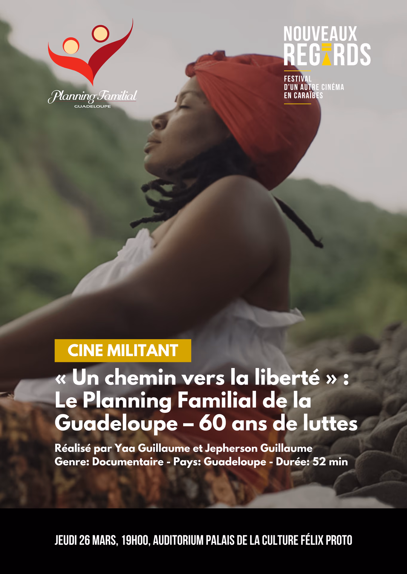 UN CHEMIN VERS LA LIBERTÉ, LE PLANNING FAMILIAL DE LA GUADELOUPE – 60 ANS DE LUTTES EN AVANT-PREMIÈRE DE YAA GUILLAUME & JEFFERSON GUILLAUME PAYS GUADELOUPE GENRE DOCUMENTAIRE DURÉE 52MIN ANNÉE 2026 Avant d’être un droit, choisir était un risque. En Guadeloupe, les pionnières et pionniers du Planning familial ont défié l’ordre établi pour faire entendre que « Timoun pa ka fèt an pangal », à une époque où le désir des femmes n’était pas interrogeable. Depuis maintenant 60 ans, ce combat s’inscrit dans une histoire de militantisme profondément ancrée dans la société guadeloupéenne. Un chemin vers la liberté nous ramène aux premiers pas de ce mouvement féministe porté par des enfants du pays, à travers les regards croisés d’experts scientifiques et de témoins d’hier et d’aujourd’hui. De cette lutte pour la réappropriation du droit à disposer de son corps est né bien plus qu’un combat : un véritable mouvement d’émancipation collective.