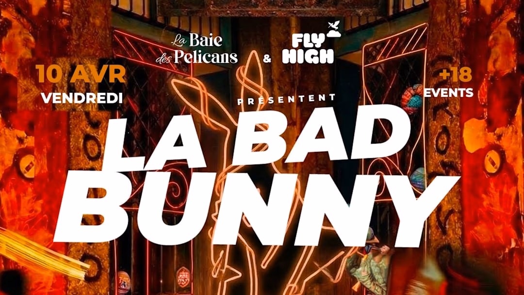 FLY HIGH 🪽annonce 🔥 LA BAD BUNNY 🔥🐰 🌴🕶️ VIBES LOCA LOCA 🗓️ Vendredi 10 Avril 📍La Baie des Pélicans La nuit où les vibes latines rencontrent l’énergie du club… Prépare-toi pour LA BAD BUNNY, une soirée explosive où les rythmes vont faire vibrer la baie jusqu’au bout de la nuit 🌊✨ Au coucher du soleil, la musique démarre… 🌅 Les basses montent, les corps bougent, l’ambiance devient électrique. Ce n’est pas juste une soirée — c’est une expérience. 🎶 Line Up 🎶 QUEEN AMANN • BEATSOUL • STAN-LEY • LISTENDAT • Guest 🔥 Music vibes 🔥 Latin House • Afro House • House • Dembow • Shatta • Bouyon • Hip-Hop 🕕 18h → 02h Du sunset aux étoiles ⭐ Challenge : Tente de gagner un surprise en étant le/la plus original(e) de la soirée 🎁 👘 Dress Code : Dress to Impress Playboy/playgirl • Coloré • Latin Vibes Fais ressortir ton meilleur style. Que tu viennes pour danser, pour les vibes ou pour la fête… LA BAD BUNNY t’attend. Une nuit. Une énergie. LA BAD BUNNY 🐰