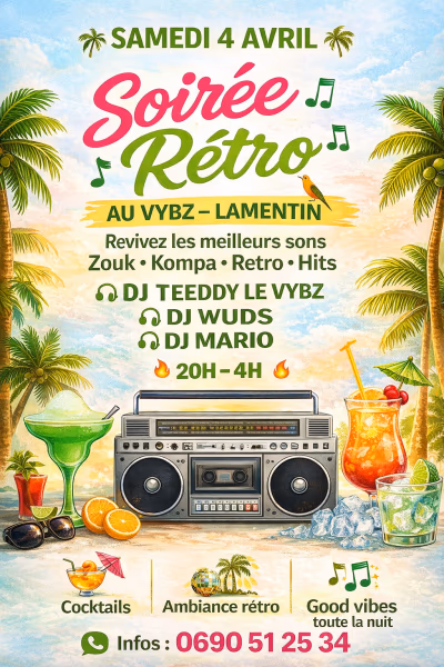 Réouverture du Vybz apres le careme Soirée retro Entrée gratuite consommation obligatoire Info resa table 0690 51 25 34
