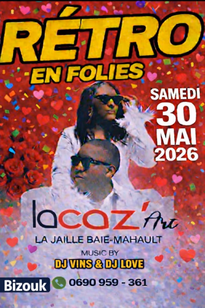 La plus grande soirée Rétro débarque à Lacaz'art le Samedi 30 mai 2026.Génération en Folies présente Rétro en folies années 80/90 des + de 30 ans.Le répertoire Zouk souvenirs sera Garanti. Rendez-vous à ne pas manquer.