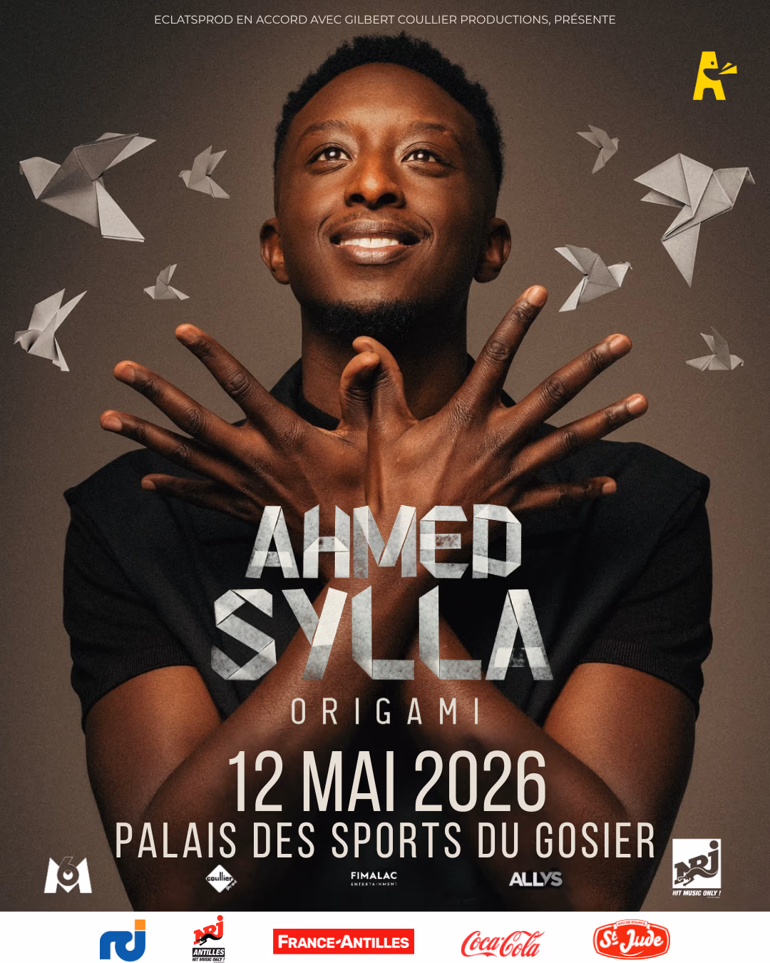 ECLATSPROD en accord avec GILBERT COULLIER PRODUCTIONS vous présente AHMED SYLLA dans son spectacle "ORIGAMI", Origami : ou l’art du pliage. Je vois nos destins comme des origamis qui se plient à des choix, des joies et des peines, des victoires et des échecs... Pendant plus de 10 ans maintenant, je me suis plié en quatre pour essayer de vous plier en deux. Je me demande quelle forme aurait pris mon origami, mon destin, si je n'avais pas plié bagage de ma ville natale... Instagram: https://www.instagram.com/eclatsprod/ Ouverture des portes: 18h30 Début du spectacle: 20h Fermeture des portes: 20h30 1 ticket acheté = 1 entrée contact: contact: info@eclatsprod.com