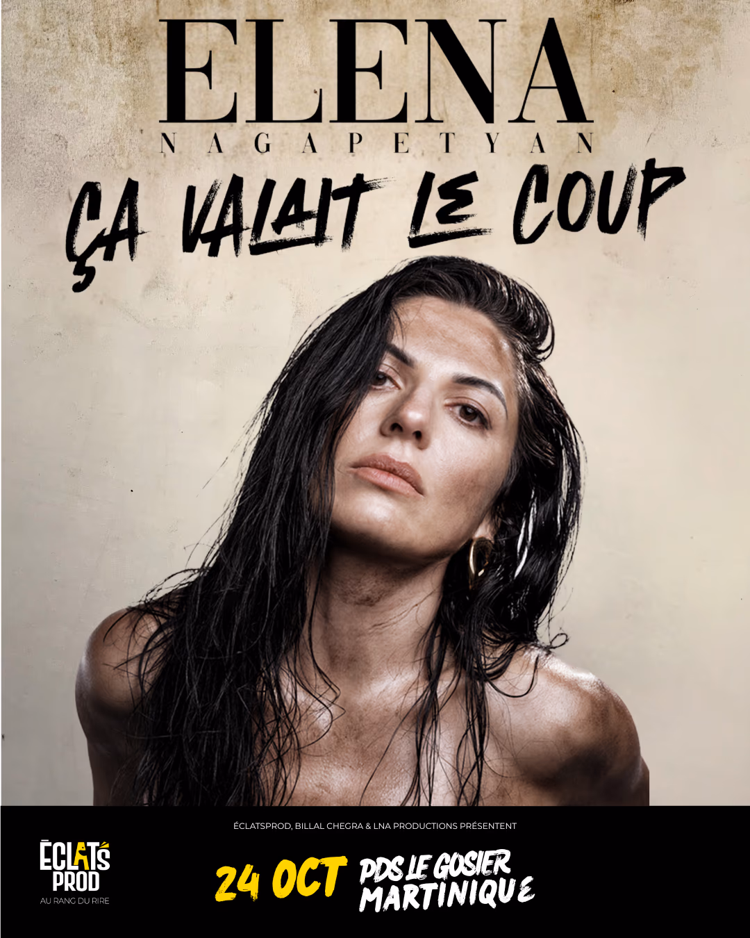 ECLATSPROD présente ELENA NAGAPETYAN dans son spectacle “Ca valait le coup” Ma plus grande peur dans la vie, c’est d’avoir des regrets et de croiser un cafard. Les cafards, j’en ai déjà eu. Pour le reste, je referais tout de la même manière : quitter la maison de ma mère à 13 ans, débarquer en France à 22 ans, épouser un date Tinder, avoir un enfant et divorcer. Je suis née en Ouzbékistan, j’ai grandi en Russie et, après une dépression post-partum, un divorce et plusieurs métiers, j’ai ressenti le besoin de raconter mon histoire. Monter sur scène pour le faire dans une langue qui n’est pas la mienne, mais que je maîtrise mieux que certains français, ça valait vraiment le coup. Ce spectacle raconte le parcours d’une fille qui essaie d’assumer ses choix, même quand il faut aller au parc avec son fils malgré une gueule de bois. Celle qui ose dire ce qu’elle pense et vivre comme elle veut. Libre. Auteur : Elena Nagapetyan Production : Billal Chegra Productions Instagram: https://www.instag
