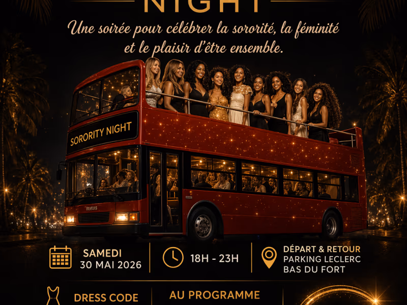 Rejoins-nous pour la Sorority Night, une soirée exclusive célébrant la sororité et la féminité à bord du bus impérial. Organisé par Kabawi, cet événement invite les femmes à se réunir pour une soirée mémorable pleine de surprises et de moments de partage. Profite d'un accueil personnalisé, d'un cocktail dînatoire et d'une ambiance musicale pour lâcher prise. Le dress code est chic et féminine, alors prépare-toi à briller! Ne manque pas cette occasion de te connecter à ta féminité et de célébrer le plaisir d'être ensemble dans un cadre élégant. Code vestimentaire: Chic & Féminine.
